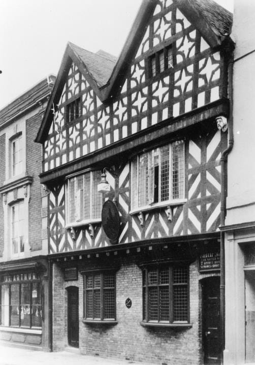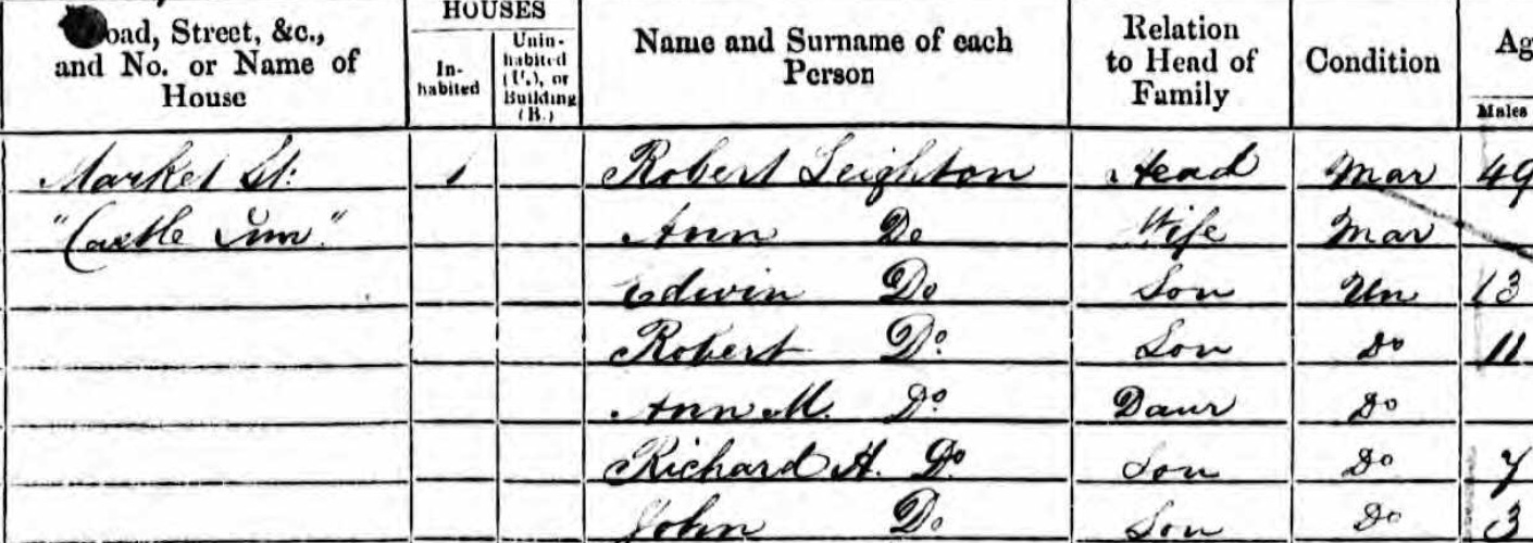 The Castle Inn. The 1861 England census information for some Leightons showed a little extra snippet of information: “Castle Inn”. That detail allowed me to look for whether the inn still existed, find old photos of it, and ultimately to see it in its current state on Google’s Street View.