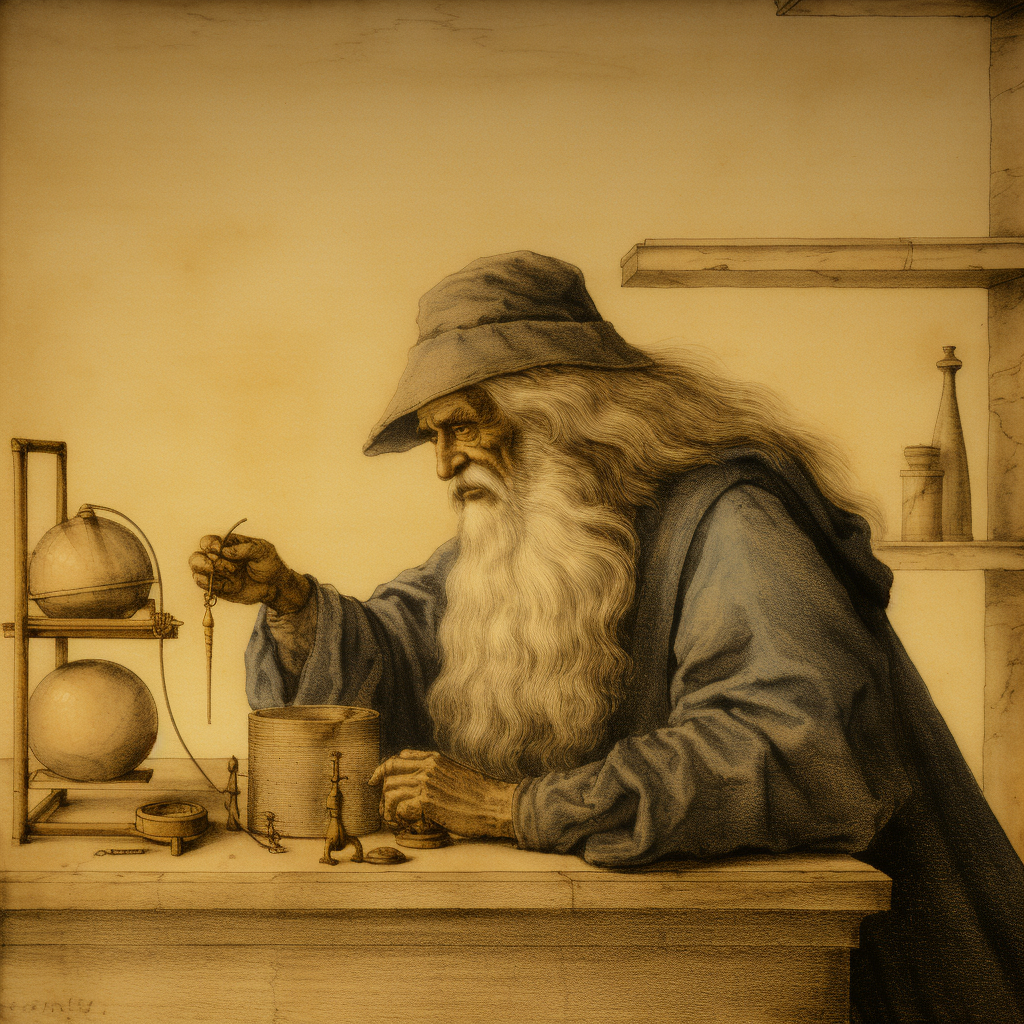 AI representation of Leonardo da Vinci experimenting later in life