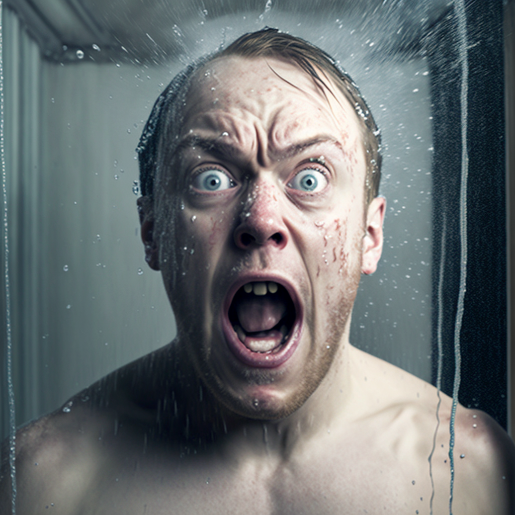 Midjourney’s AI version of “shocked reaction to cold shower”